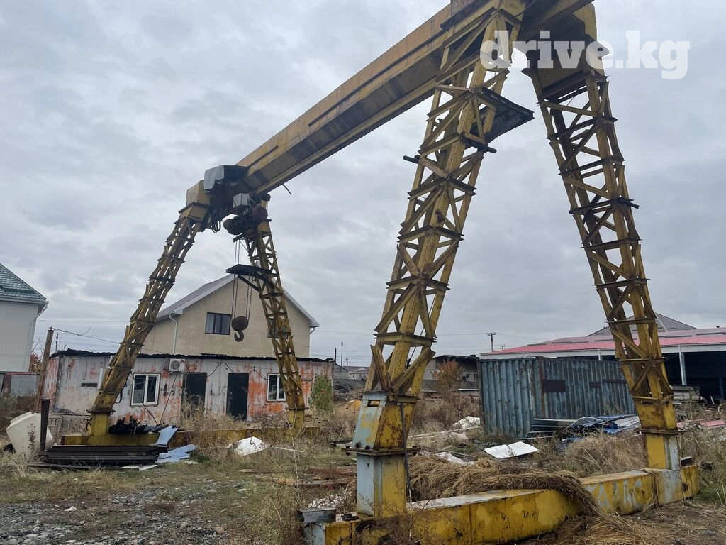 Козловой кран. Путь 32м+-рельс и шпалы в комплекте, высота 4-5м. Грузоподъемность 10тонн. Пролет 9.5+-м. Разборный. Находится в Кок Жар.