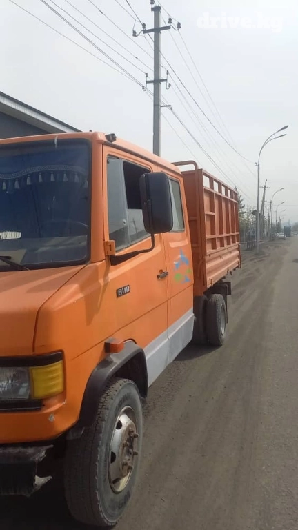 Продается оранжевый самосвал Mercedes-Benz. Кузов подъемный, что упрощает выгрузку сыпучих материалов. В салоне установлены сиденья и приборная панель.