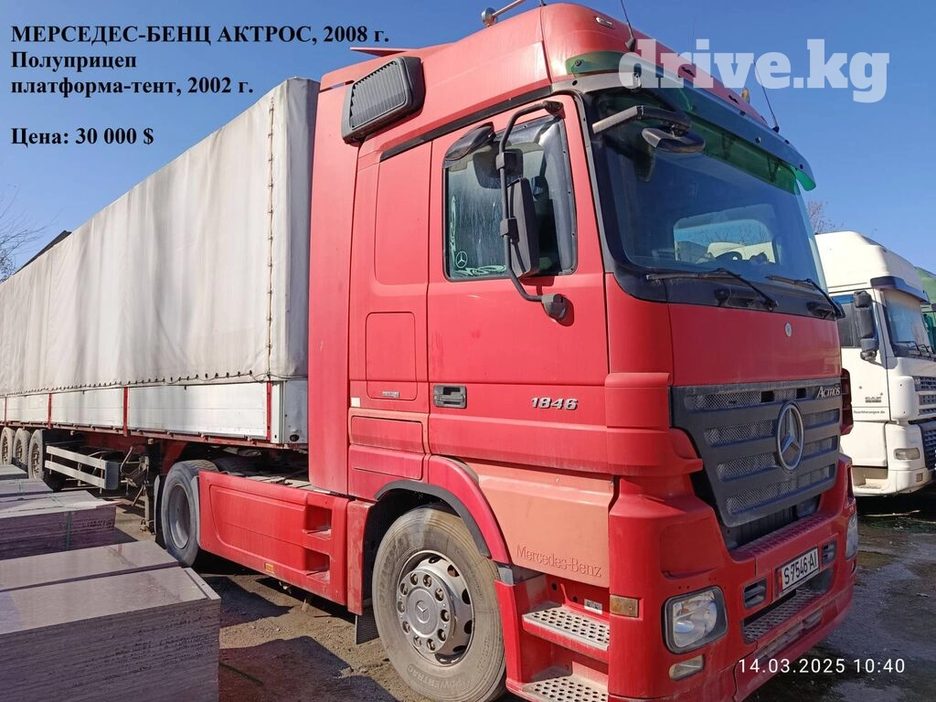 1. Мерседес-Бенц АКТРОС, 2008 г. (белый). Полуприцеп, платформа-тент KRONE SDP, 2006 г. Состояние хорошее, капитальных вложений не требует.Цена: 32 000 $