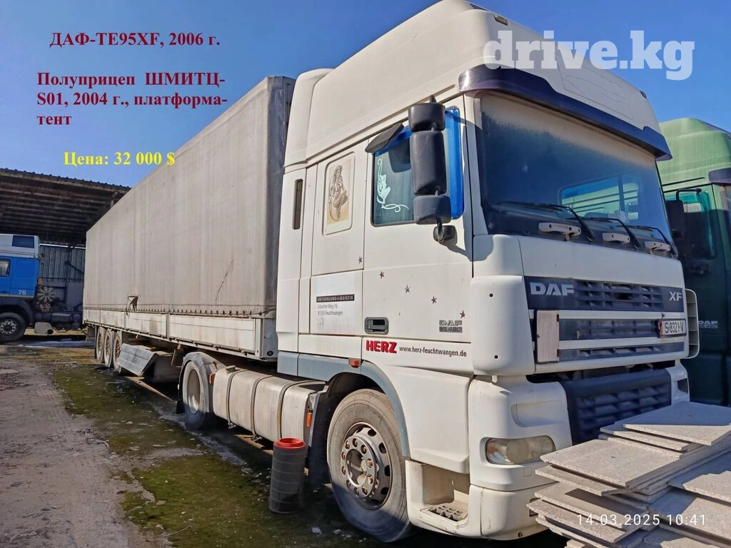 3. ДАФ-TE95XF, 2006 г. (белый). Полуприцеп ШМИТЦ-S01, платформа-тент, 2004 г. Цена: 32 000$.