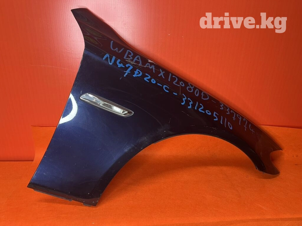 Автомобильное крыло темно-синего цвета, предназначенное для установки спереди. На крыле присутствует встроенный поворотник, что упрощает монтаж и обеспечивает дополнительную безопасность на дороге. Деталь является важным элементом кузова, защищающим от грязи и мелких повреждений. Подходит для замены поврежденного или устаревшего элемента.