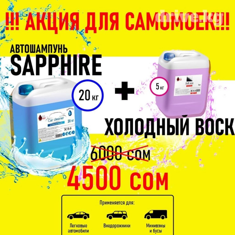 Бесконтактный автошампунь для автомойки sapphire компании aqua grad оптом и в розницу. Для автомоек, для мойки самообслуживания и для личного пользования. Шампунь для бесконтактной мойки автомобилей с повышенным пенообразованием. Образует стойкую активную пену. Быстро и эффективно очищает лакокрасочные покрытия от грязи, насекомых, твердых частиц, масляных загрязнений. Обладает высокой моющей способностью. Активная густая стойкая пена (пенка для мойки). Автошампунь для самомойки при использовании образует чистую, обезжиренную, блестящую поверхность без разводов и белого налета. Содержит ингибитор коррозии. Безопасен для пластика, резины и лакокрасочного покрытия автомобиля. Автокосметика aqua grad премиум класса.