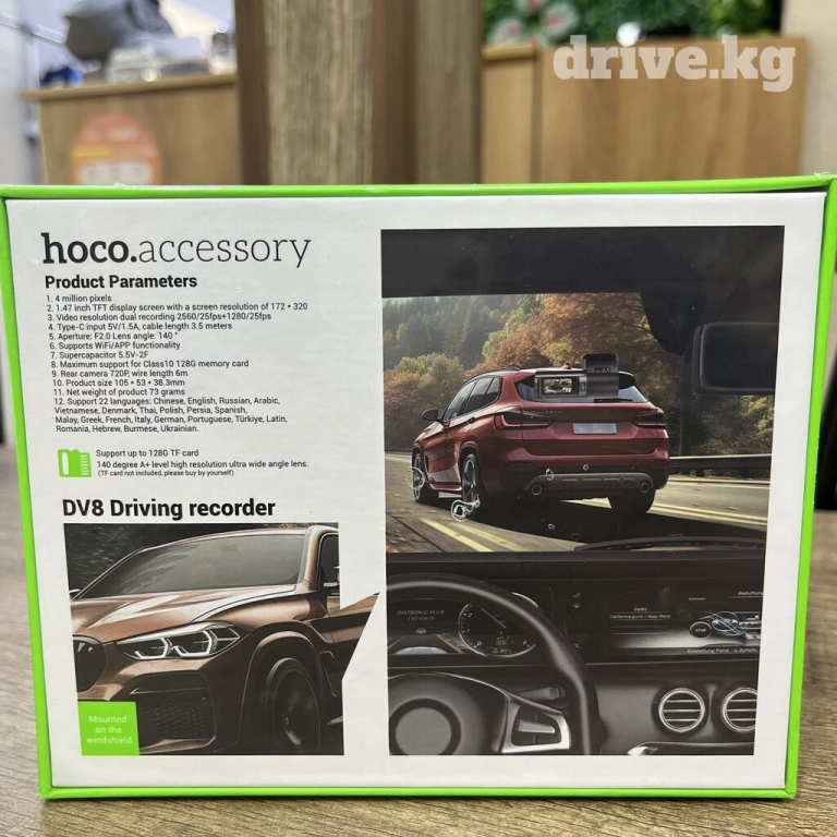 Hoco DV8 2K - это скрытый регистратор вождения с дисплеем и камерой заднего вида, который предназначен для записи видео во время движения автомобиля. Вот предполагаемые характеристики и особенности этого устройства: Регистрация видео в высоком разрешении: Регистратор может записывать видео в разрешении 2K (2560x1440 пикселей) с высоким качеством изображения. Двойная камера: Устройство оснащено двумя камерами: передней для записи событий на дороге и задней для записи происходящего за автомобилем