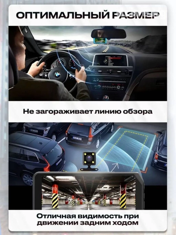 Главная фишка это то, что он поставляется с еще одной камерой в наборе. Ее можно использовать и как помощника при езде назад, и как 2е записывающее устройство, фиксирующее ситуации сзади.