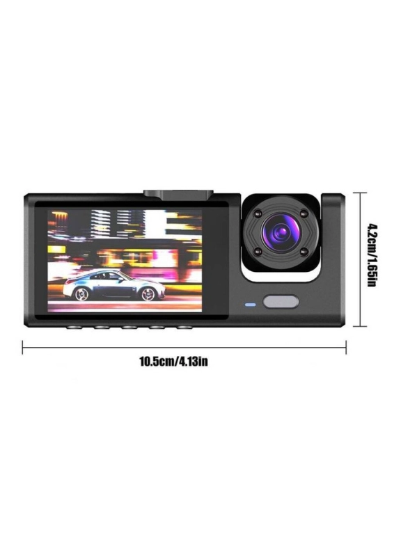 Угол обзора трех камер данного устройства 170°/90°/90°. Поддержка циклической записи и функции обнаружения движения. Карта памяти до 32 ГБ, входит в комплект.