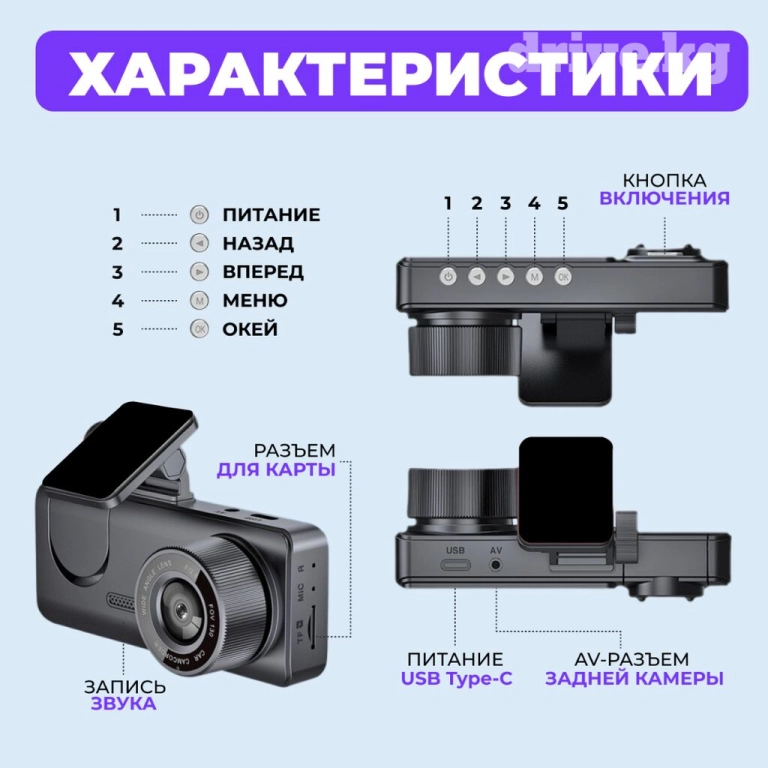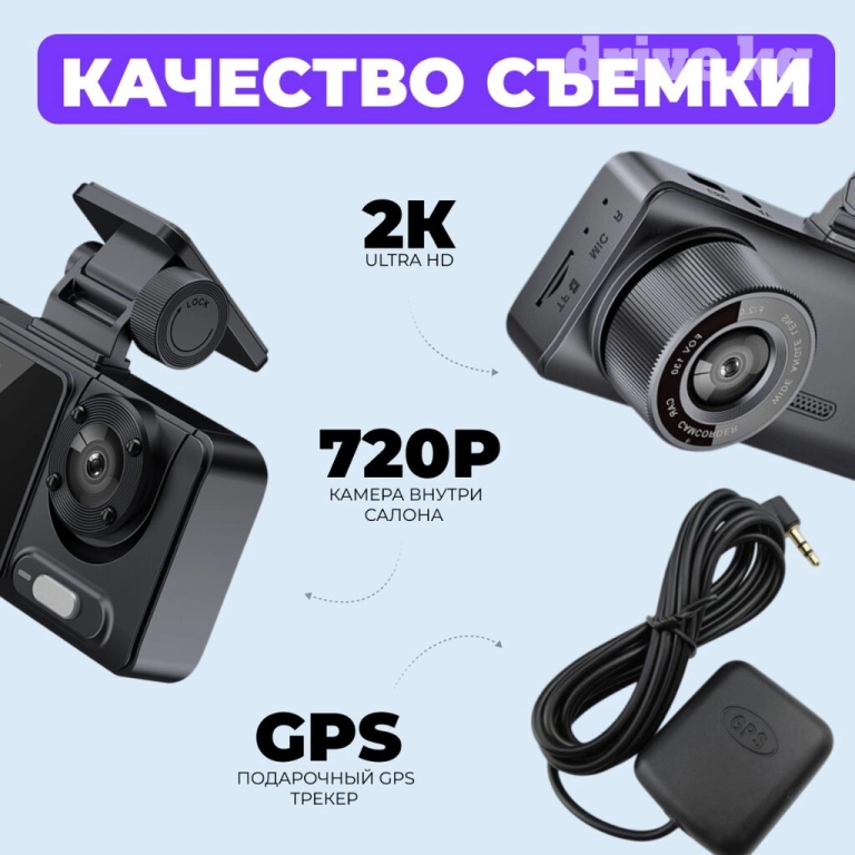 📌 Дополнительные преимущества: инструкция на русском языке, автоматический запуск записи, циклическая съемка, широкоугольная линза, возможность одновременной записи с двух камер и функция мониторинга парковки. В комплекте идет подарок – GPS трекер. Перед началом использования необходимо снять защитную пленку с объектива.