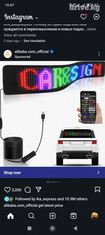 Led панель для машины. программируемый, питание от прикуривателя размер панели 12 на 59 см