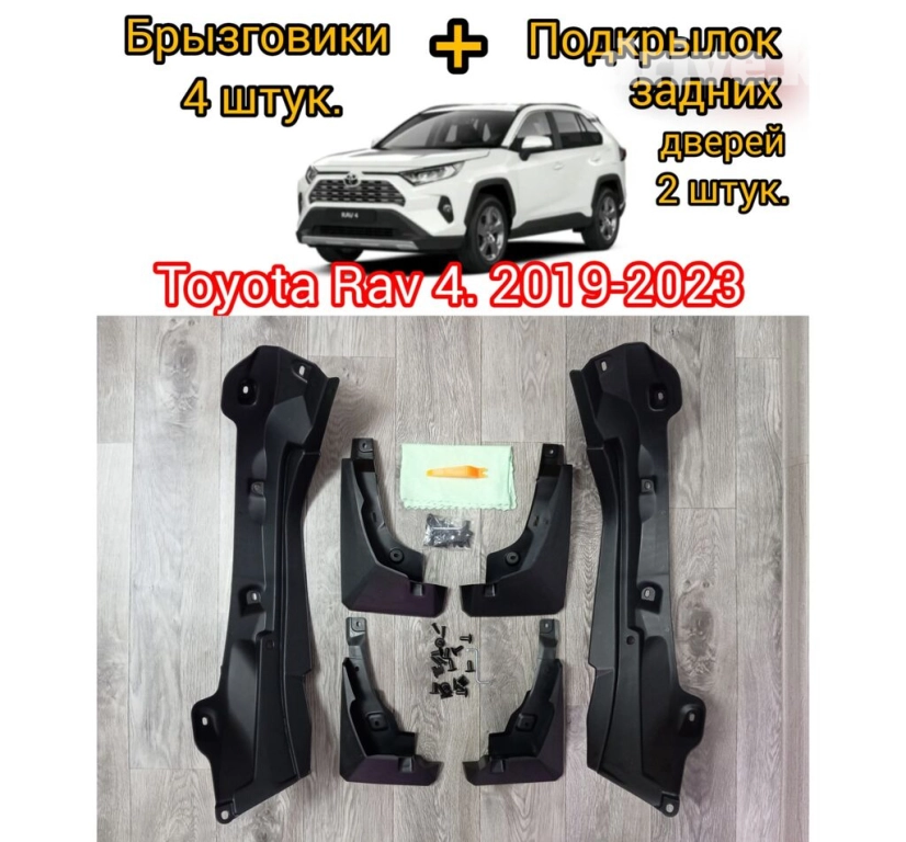 Брызговики Toyota RAV4 ХА50 и дополнительные подкрылники для задних дверей.