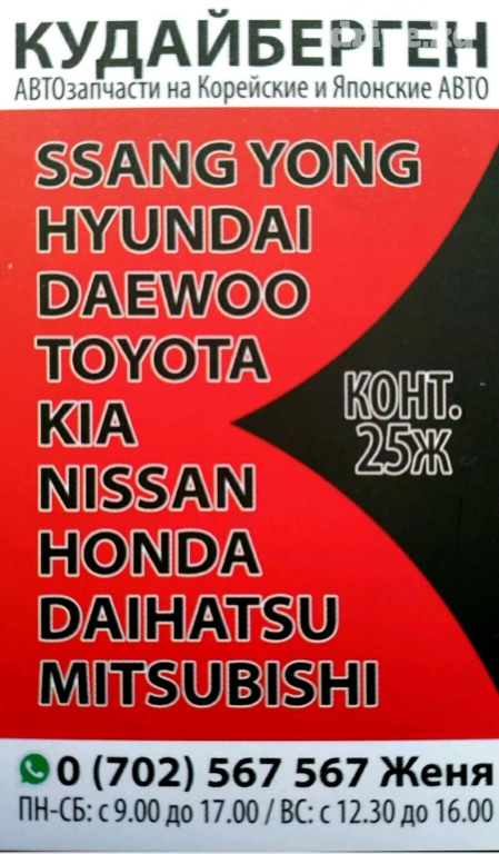Автозапчасти на корейские авто. Рынок Кудайберген, конт. 25ж. тел: