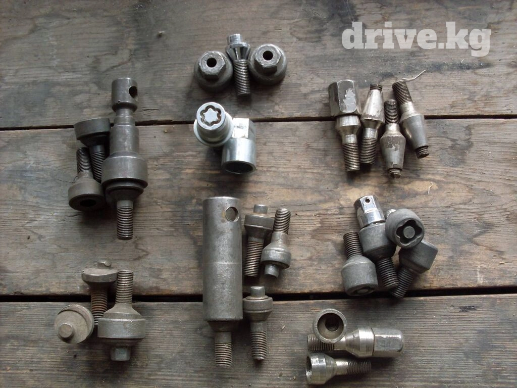 Фирменный комплект с двумя противоугонными ключами (болты на 12 в футляре)- 800 сом.