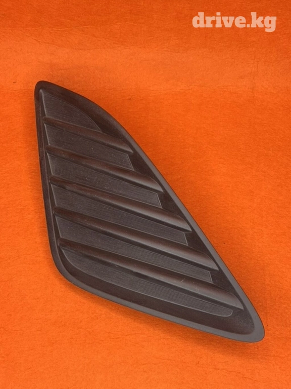 Автомобильная решетка черного цвета, предназначенная для установки в бампер или другую часть кузова автомобиля. Имеет наклонные ламели, обеспечивающие вентиляцию и защиту от попадания посторонних предметов. Изготовлена из прочного пластика, устойчивого к внешним воздействиям. Подходит для замены поврежденных или изношенных элементов, а также для тюнинга.
