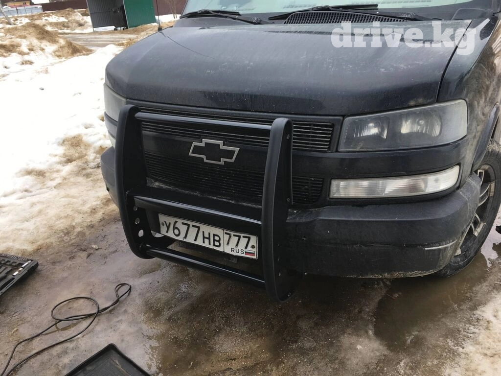 Кенгурятник push bar на Chevrolet Express . Полный установочный комплект, ставится без дороботок.Антикорозийное, ударопрочное порошковое покрытие. Так же есть защита заднего бампера