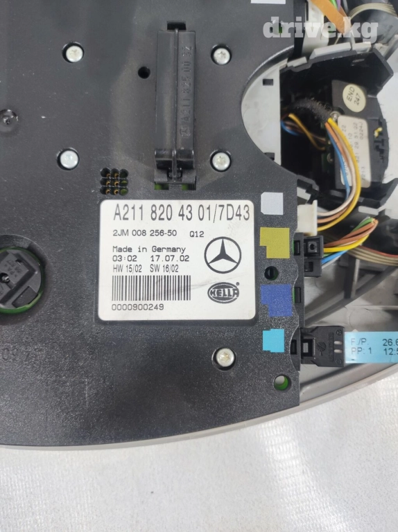 Оригинальный плафон для внутреннего освещения Mercedes-Benz W211. В хорошем состоянии. Также в наличии плафоны для других моделей Mercedes, включая W210 и W220, а также для Hyundai Getz, Toyota Avensis, Nissan Almera N16, Mitsubishi Colt.