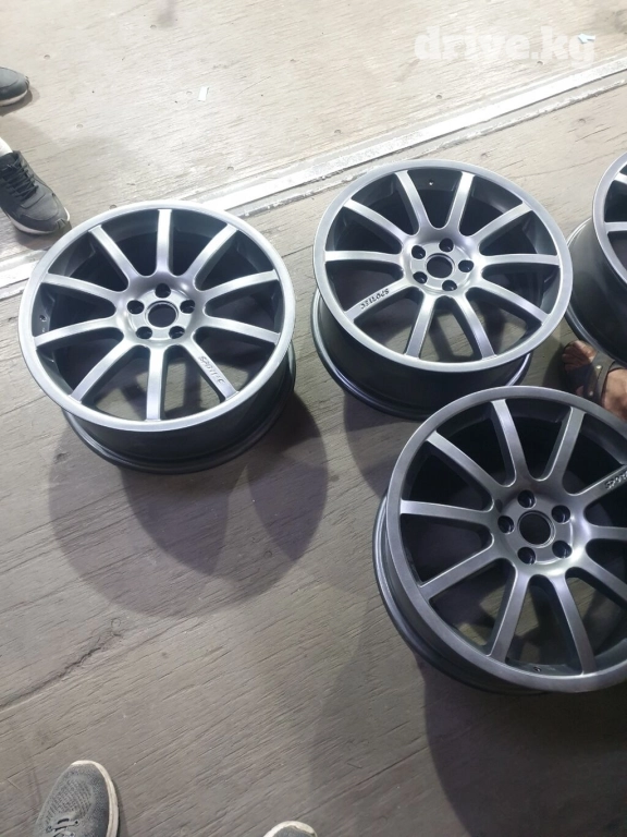 Диски на subaru r18. Оригинальные японские диски 《sportec》. Очень прочные и облегчённый не смотря на свой размер. Дискам также прилагается резина 215/45 r18. Вылет дисков 7.5j. разбалтовка 5×100