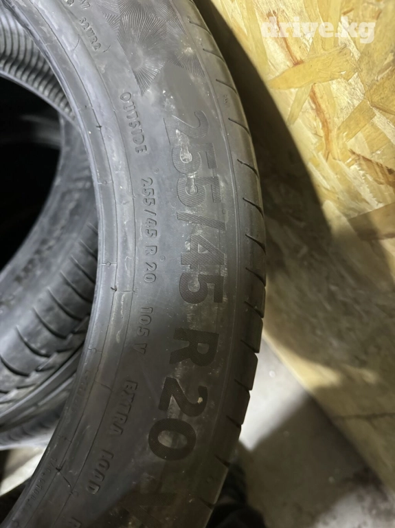 Летняя немецкая шина. Фирма Continental made in Germany. Размер 255/45R20. Остаток протектора 85%. Цена 35000 сом