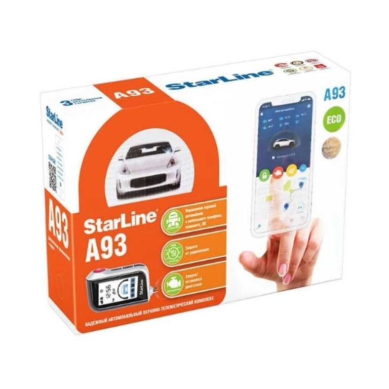 Starline a93 eco – надежный автомобильный охранно-телематический комплекс с интеллектуальным автозапуском, несканируемым диалоговым кодом управления, опциональными 2can+2lin и gsm интерфейсами, опциональным gps-глонасс мониторингом, ударопрочным брелком управления, 128-канальным помехозащищенным трансивером с дальностью оповещения до 2000 м.
