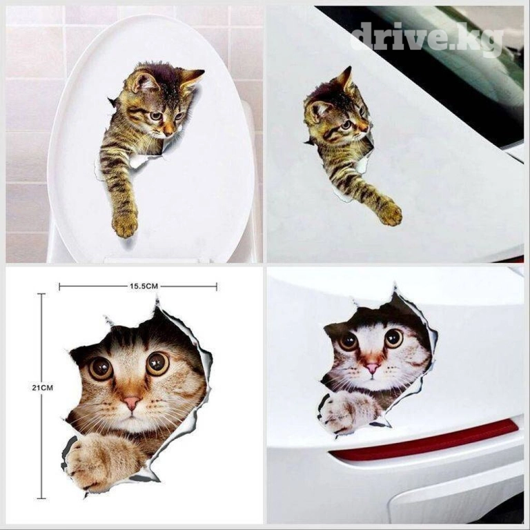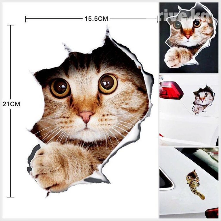 Наклейка, стикер 3D с изображением кошки, 3D трехмерная милая