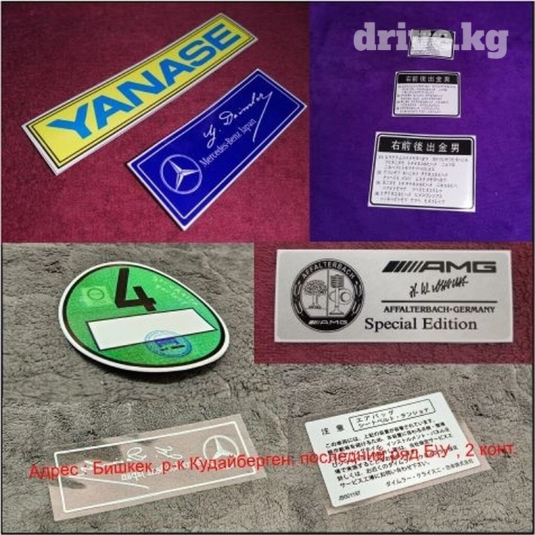 Наклейки YANASE (янасе), daimler (даймлер) на Мercedes benz, AMG. В наличии. наклейки под капод. Не оригинал. Клеятся снаружи. Хорошее качество, не размываются. Адрес: Бишкек, рынок кудайберген, 0 ряд жайма, 2 контейнер, заезд по ул. волкова ( б/у разбор), работаем с 10 до 16 ч, Воскресенье выходной, звонить можно с 10 утра до 18 ч.