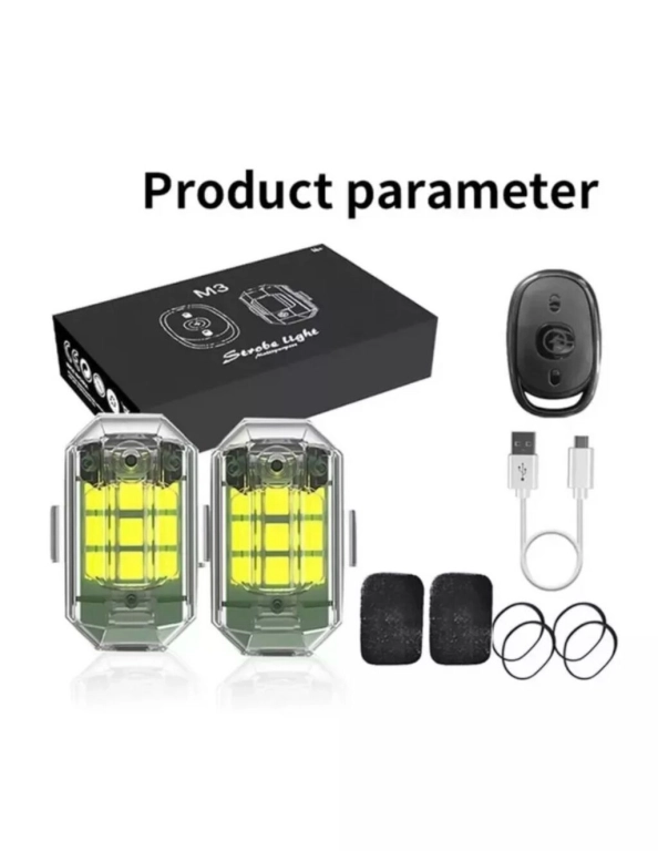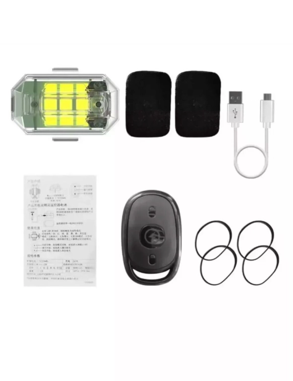 Внутри коробки имеется пульт для включения и выключения,липучки и резинки для крепления и зарядка.”Фонарики “на магнитах