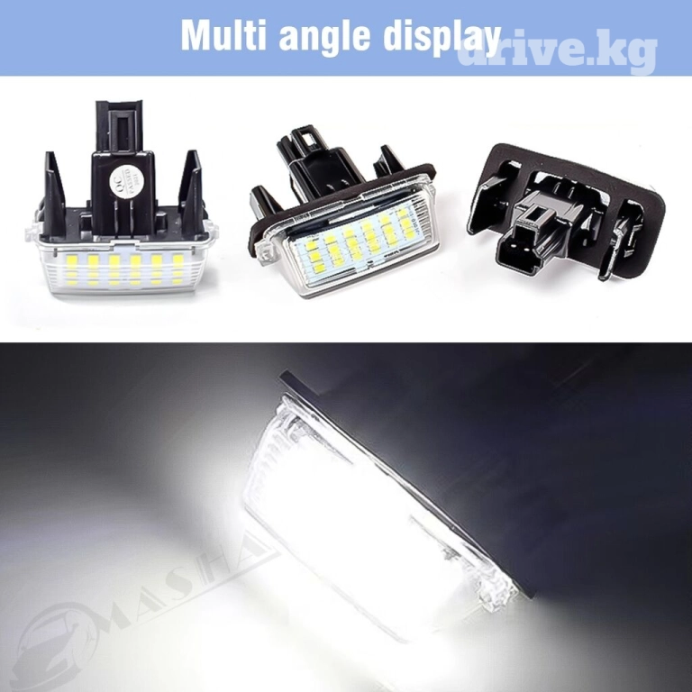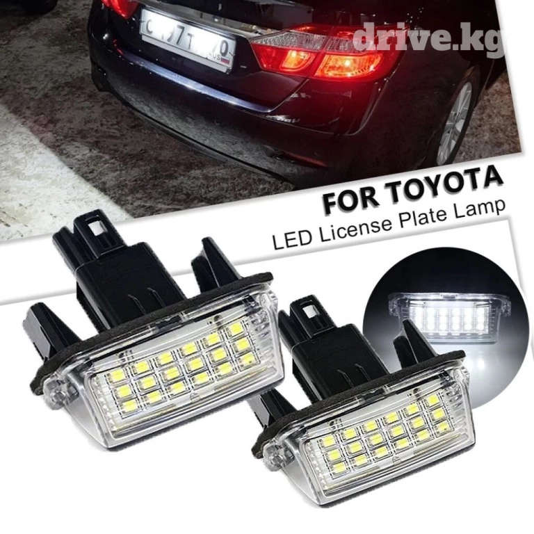 Высокое качество. Супер яркие номерные знаки. Напряжение: 12V Мощность: 2 Вт Срок службы: до 50000 часов Цветовая температура: 6500K ~ 7000K Низкое энергопотребление, высокая эффективность и энергосбережение. Долговечный, ударопрочный. Для Toyota Camry 7 Для Toyota Highlander 8 Для Toyota Avalon 8 Комплектация Комплект 2 шт, лево/право