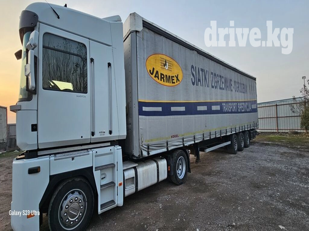 Рено Магнум 2012 год, Мега, коробка автомат, 2 бака 900 литров, мотор D13 480 л.с. Прицеп Кogel 2013 год мега 105 кубов, дополнительные стойки, мосты saf на гусаках. Тягач и прицеп в отличном состоянии полностью все обслужено. Продаётся только в комплекте. Реальному клиенту хороший торг. Осмотр город Кант.
