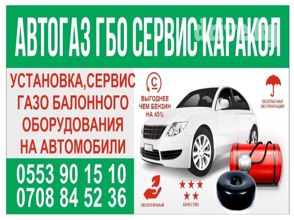 Установка ГБО в городе Каракол! Экономно до 45% на газе чем на бензине. Установка газобаллонного оборудование 3-4 поколения: на все виды авто: Тойота, Хонда, Лексус, Ауди, VW Пассат, гольф и др. авто. Есть рассрочка через банк. Диагностика, ремонт, чистка и регулировка инжекторов. . . Аман. . Таалай.