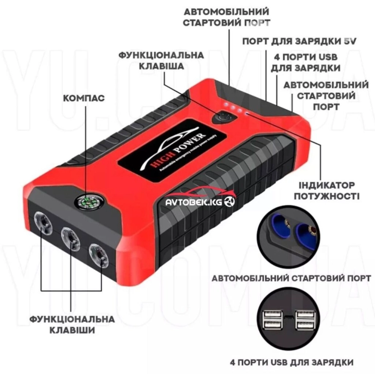 JX27 WITH PUMP 20000 мАч - это компактный прибор, с помощью которого можно в два счета запустить автомобильный двигатель в случае разряда штатного аккумулятора.