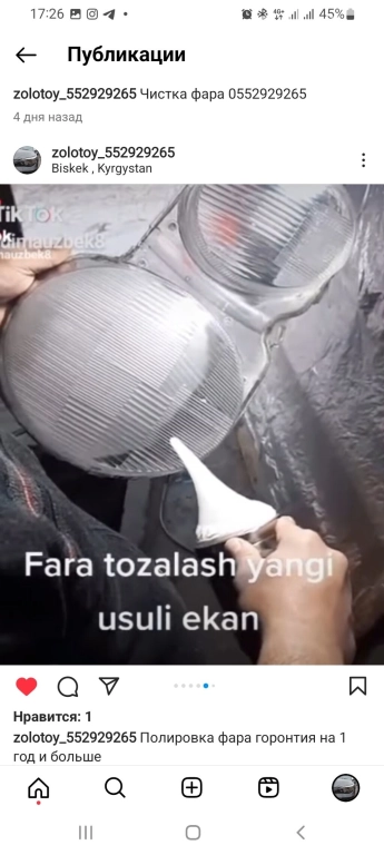 Чистка фара (полировка фара )как новый будет горонтия 1 год и больше позвоните или напишите по ватсапу г.Ош