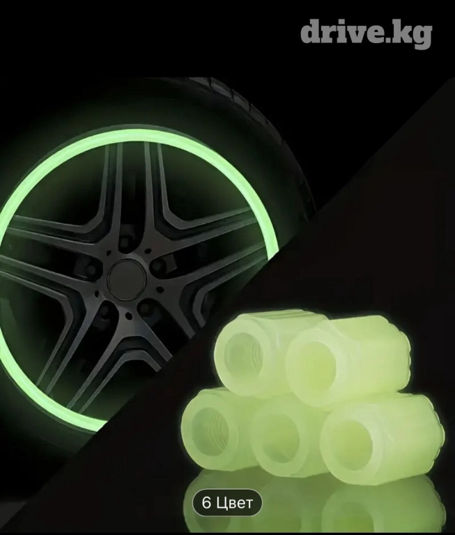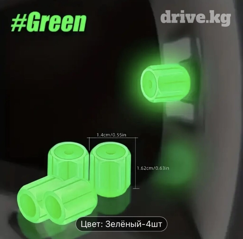 Светящийся колпачки 4 шт. Флуоресцентные колпачки для клапанов автомобильных шин, водонепроницаемые, светящиеся в темноте, из ПВХ, универсальные, разных цветов, для ночной видимости и защиты. Цена указана за комплект (4шт). Для оптом другой цена