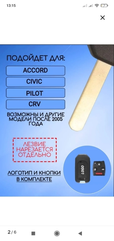 выкидной ключ Хонда,на аккорд cl7 не подошёл,просто корпус.