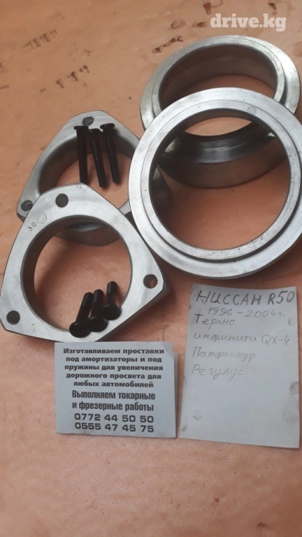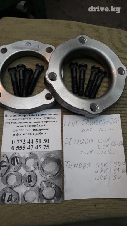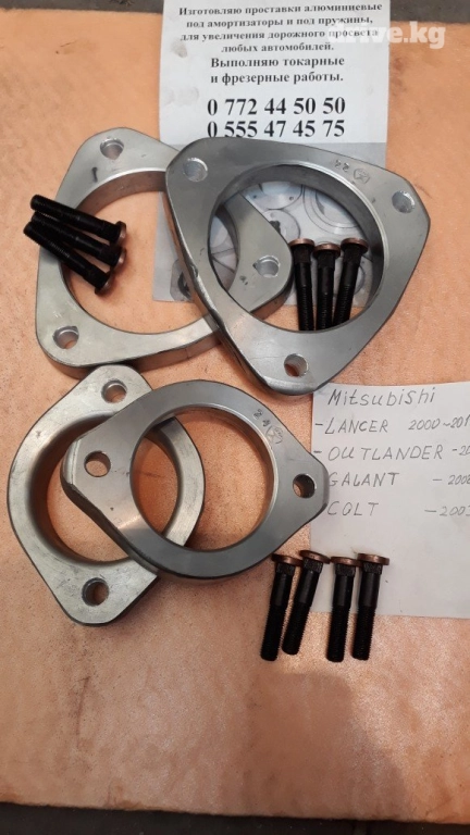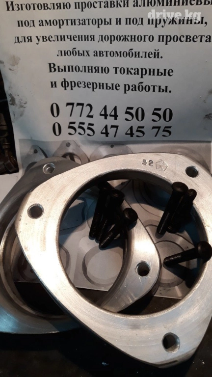 Изготовляю алюминиевые проставки .для увеличения дорожного просвета автомобилей.в комплекте со шпильками .на опорные подушки и под пружины.заказ по телефону . # Тойота #,# хонда # клиренс #