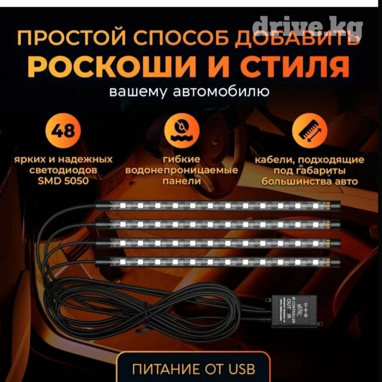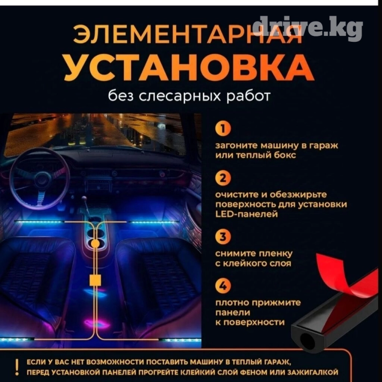 Подсветка в салон автомобиля под ноги / LED лента в машину.